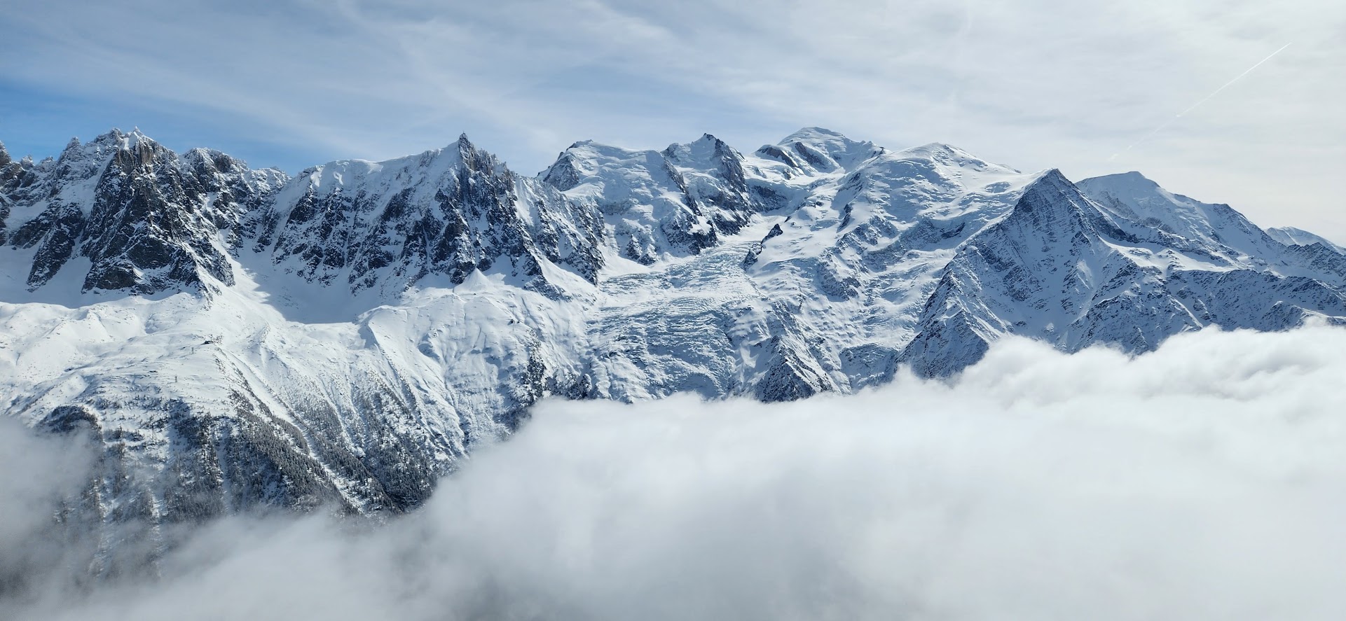 View on Mont-Blanc from the peak of Les Houches ski resort